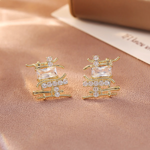 金色镂空不规则锆石耳钉(S925纯银针)