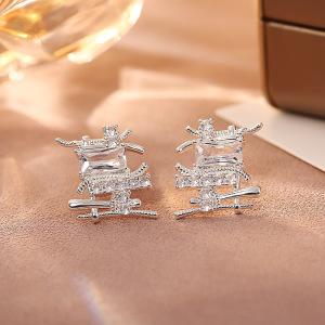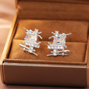 银色镂空不规则锆石耳钉(S925纯银针)