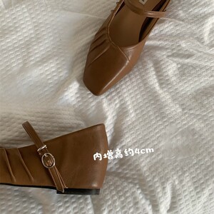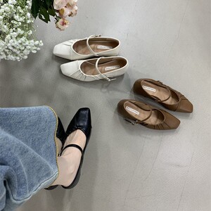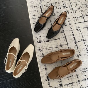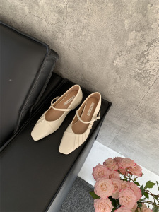 法式复古拼接方头玛丽珍鞋女2025春夏外穿一字扣带平底舒适单鞋女
