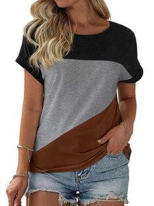 2025跨境亚马逊夏季新款热卖女士t恤上衣拼色圆领百搭休闲女 上衣