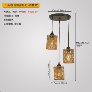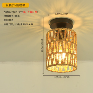 跨境美式藤编吊灯禅意民宿走廊玄关过道吸顶灯亚马逊农舍乡村