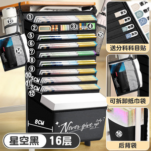 【星空黑】16层升级大容量/可放水杯/送科目贴