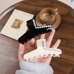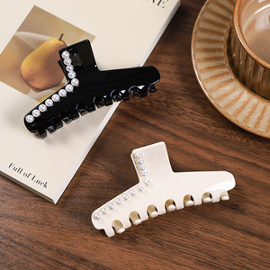 法式优雅黑色镶钻醋酸发夹百搭抓夹后脑勺高级感盘发11cm鲨鱼夹