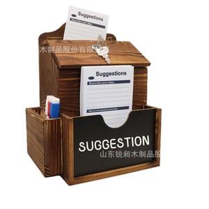 跨境木制信件箱笔筒带锁壁挂式意见箱墙壁装饰实木信箱邮件募捐箱