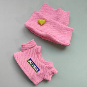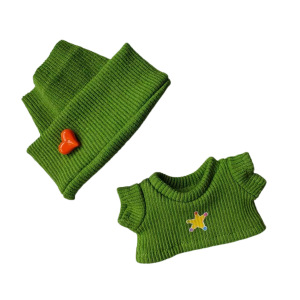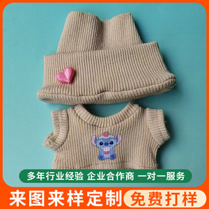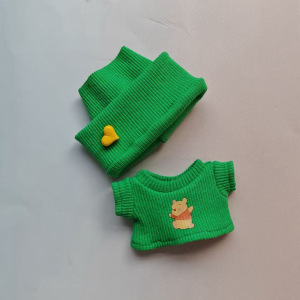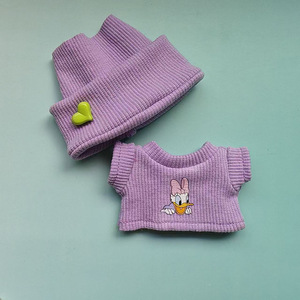 【仅衣服】17cm毛绒公仔娃娃螺纹针织翻边帽+套头针织螺纹T恤套装