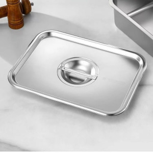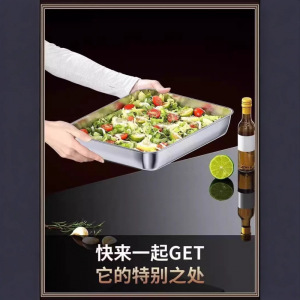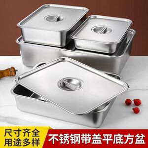不锈钢带盖方盆长方形方盘商用食堂打餐盆份数盆加深平底托盘