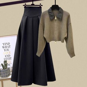 秋冬季穿搭一整套2025新款感polo领针织毛衣显瘦半身裙两件套