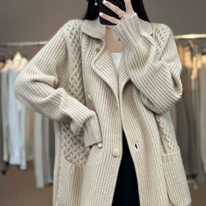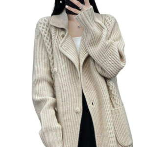 新款加厚中长款毛衣开衫外套女韩版百搭气质休闲慵懒风针织衫外套