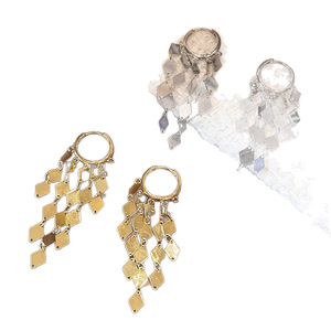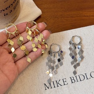 千金风金色菱形流苏耳钉女款轻奢高级感气质夸张耳圈绝美耳饰耳环