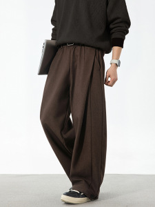 立体プリーツデザインカジュアルパンツメンズ春夏新作ドレープ万能パンツレトロルーズサイドスプリットパンツ
