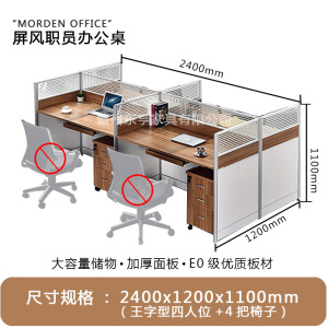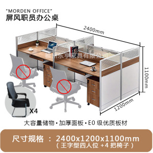 シンプルスクリーンデスク 4人用スタッフデスク パーティションカードシート オフィスコンピューターデスクと椅子の組み合わせ スタッフデスク