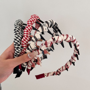 韓国の新鮮でシンプルなチェック柄の歯付きウェーブヘッドバンド 2025 新しい高頭頂ヘッドバンド多用途ヘッドバンドヘアピン女性用