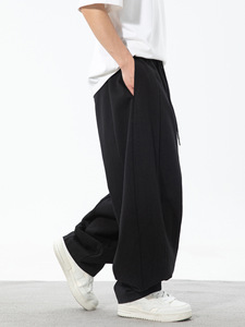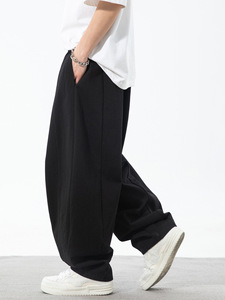 春夏の男性用テクスチャードシルエットカジュアルパンツ、新しいスタイル、ゆったりとしたほんのり細い脚のブルマー、分割デザインのトレンディなブランドパンツ