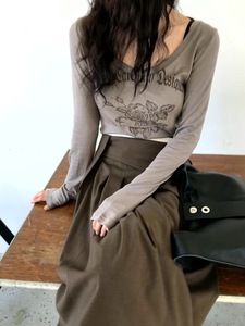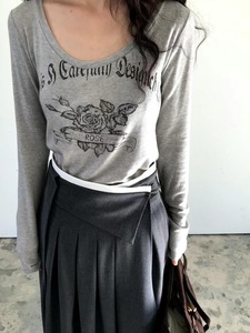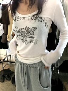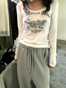 韓国東大門25年春新作we areローズプリントラウンドネックソフトで快適な長袖Tシャツ