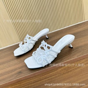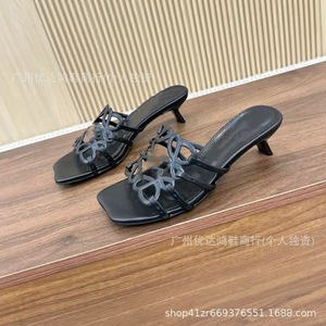 高版罗家拖鞋女跨境4公分夏新款真皮百搭休闲沙滩拖细跟一字拖鞋