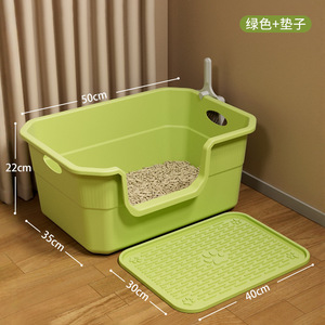 【便捷大号提口】绿色50CM猫砂盆+原装硅胶爪印猫砂垫】防滑滤砂套装.. {送猫砂铲}