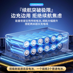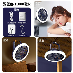 ブルー [15000 mAh] リモコンタイミング充電およびプラグイン両用 8 m/s 強風読書灯吊り下げおよび吊り下げ 3 つの用途。