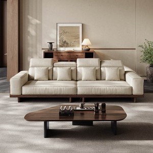 实木沙发北美黑胡桃木宋式美学贵妃大小户型布艺生态真皮现代简约