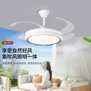新しい目に見えないファンランプレストランリビングルームシーリングファンランプ寝室のシーリングランプモダンなシンプルなファンランプ中山ランプ