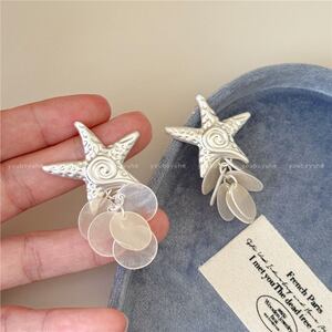 银色海星贝壳流苏耳环女个性夸张耳钉适合旅游度假的高级感耳饰品