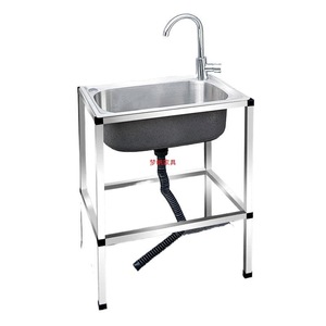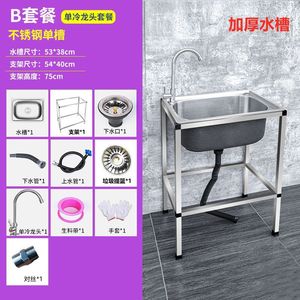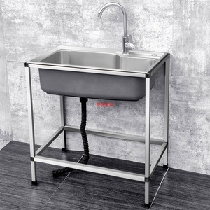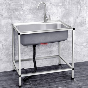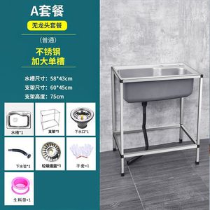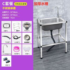 キッチン家庭用 304 ステンレス鋼シンクシングルシンクスタンド付き食器洗いシンク大型シングルシンク洗面台