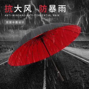 商务双层24骨雨伞暴雨专用伞结实加厚长柄直杆伞三人抗风大号伞