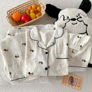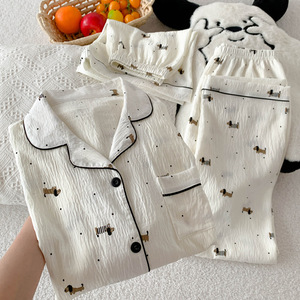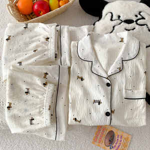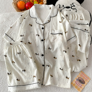 夏季卡通可爱腊肠狗睡衣女新款短袖短裤三件套学生少女家居服套装