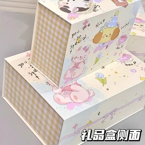 C1ins风小狗茶话会磁吸翻盖卡通生日礼物礼品盒收纳包装盒