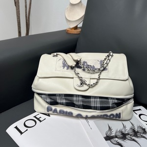 2025新款小香风Vintage中古晕染字母涂鸦包链条单肩斜挎托特包