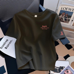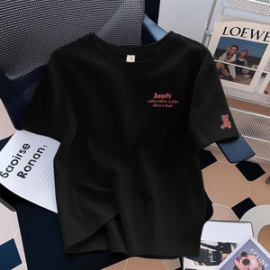 2025夏新款粉色多巴胺纯棉短袖T恤女白色宽松洋气设计感上衣ins潮
