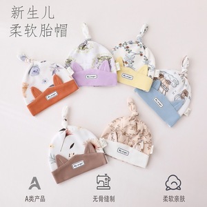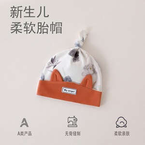 婴儿胎帽春秋双层A类新生儿帽子棉0- 3个月刚出生宝宝防风护囟门