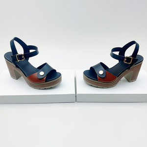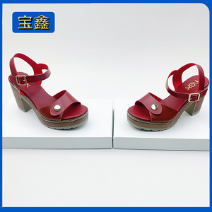 跨境时尚大码拖凉鞋女2025年夏季新款欧美鱼嘴粗跟一字扣带高