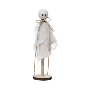 跨境热卖万圣节幽灵摆件木制品三件套木头底座万圣节日装饰用品