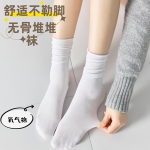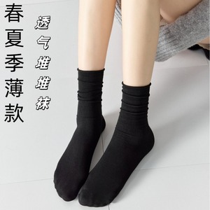 冰丝堆堆袜子女夏季薄款无骨透气中筒袜纯色ins可爱风显瘦百搭网