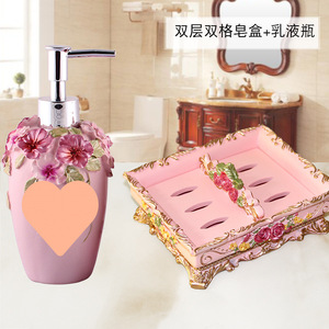 ピンクのローションボトル + ダブルコンパートメントソープディッシュ