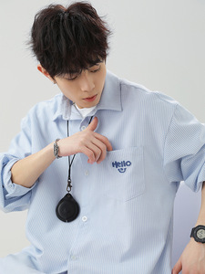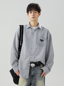 ポケット立体刺繍長袖シャツメンズ春夏新作コントラストカラー縦ストライプ日本製ルーズカップルシャツジャケット