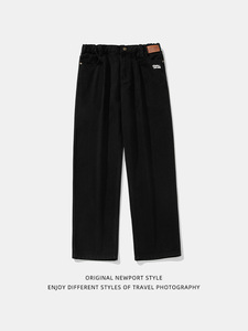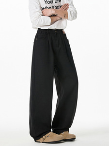 無地のレトロなプリーツデザインデニムカジュアルパンツ、春の新作、文字刺繍入りロングパンツ、トレンドブランドのゆったりパンツq
