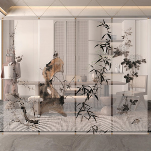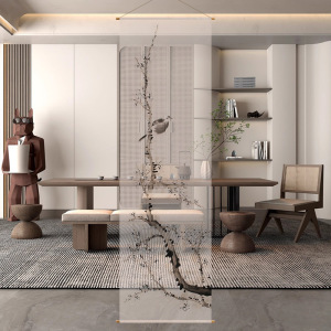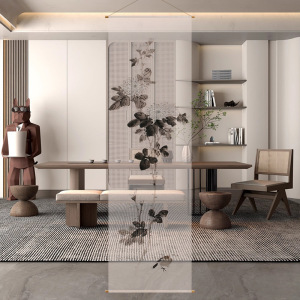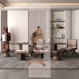 四君子风竹影纱幔新中式客厅茶室玄关透光分隔艺术长条装饰帘