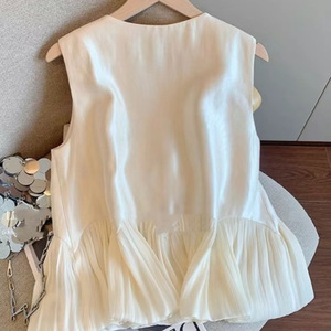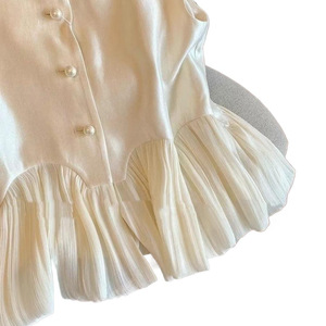 法式珠光网纱拼接无袖上衣女夏季2025新款温柔小香风显瘦马甲背心