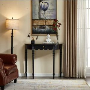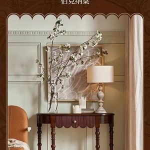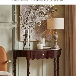 法式复古实木玄关桌小户型家用靠墙装饰桌美式半圆玄关台过道柜子