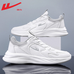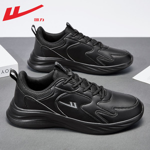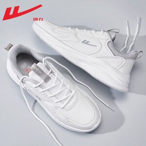 回力纯色简约小白鞋厚底舒适青少年皮面运动鞋系带商务旅行工作鞋