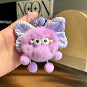 可爱毛绒挂件仿獭兔毛蝴蝶结小煤球书包包挂饰创意公仔礼物钥匙扣