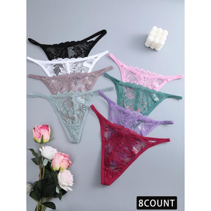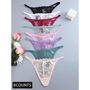 女性用ソリッドカラーのシアーレースTバック、ソフトで快適、通気性