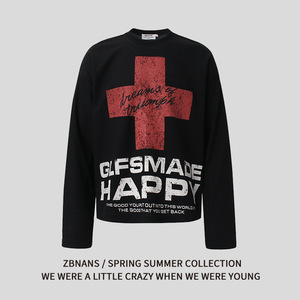 潮牌字母印花长袖T恤男女秋季街头潮流华夫格宽松休闲情侣上衣