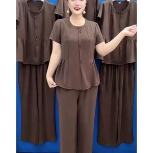 ママの夏服、小柄なファッショナブルなスーツ、大きいサイズのゆったりとした中高年女性の新しい半袖無地2点セット