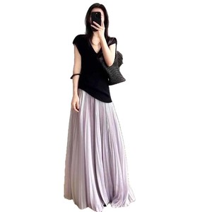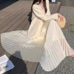 在庫あり卸売フレンチオフホワイト気質スカートレディース夏プリーツ糸多用途Aラインスカート大量購入割引