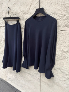 进口醋酸气质藏蓝上衣+伞裙半裙一套时尚套装