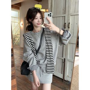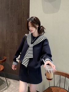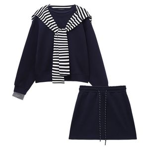 天猫质量早秋两件套潮披肩叠穿韩系宽松长袖卫衣高腰抽绳半身裙女