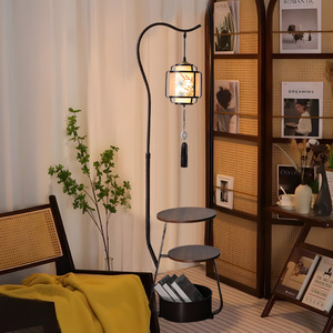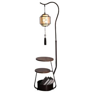 奶油风落地灯客厅沙发旁置物架摆件灯卧室床头柜一体复古落地灯