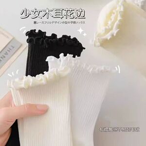 木耳边袜子女奶白色ins潮日系学院风jk花边袜夏季百搭中筒堆堆袜